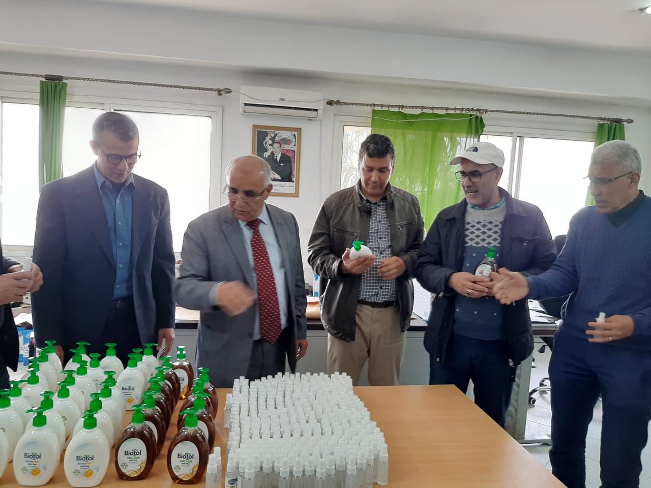 توزيع السائل المعقم اليدين على موظفي جماعة برشيد